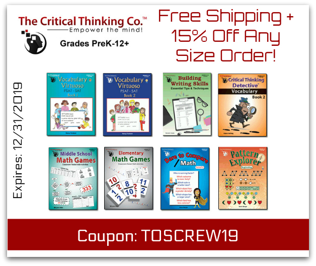 Use the coupon code below on your next The Critical Thinking Co. order. Expires 12/31/2019