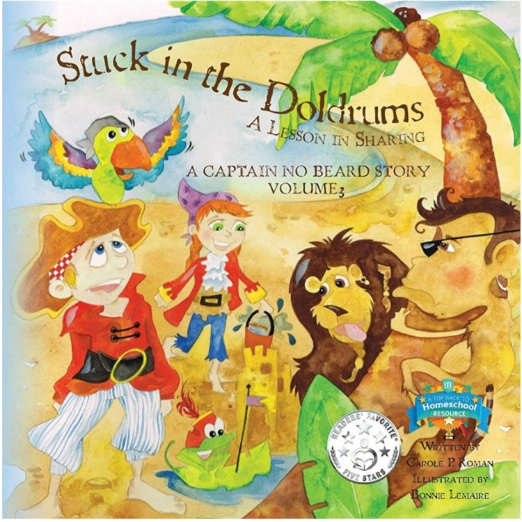 In Stuck in the Doldrums: A Lesson in Sharing, Captain No Beard and the crew find themselves marooned on a sunny day. They decide to enjoy a day on the beach but the Captain’s take-charge attitude ruins play for everyone else. Soon, a dangerous situation reminds him that being in control isn’t worth being alone. Thankfully, his crew First Mate Hallie, Mongo the Monkey, Linus the Lion, and Fribbit the Frog stick around and help save the ship because that’s what friends do.