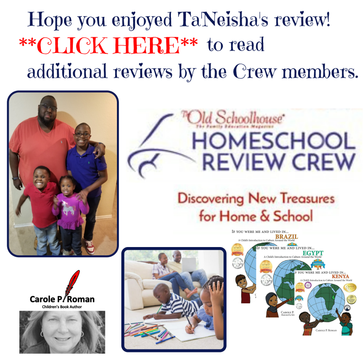 I had Bear read each of the If You Were Me and Lived In… books during our storytime. He read each book as we studied the country during Black History Month. This year my focus for that month was to study how cultural components traveled with the people as they were brought to America via slavery. We learned how some of the traditions mentioned in the books were translated into their daily lives and passed down to other generations. We also compared original things such as the Kenyan, Egyptian, and Brazilian games and compared that to ones we play now. These books were used as a quick introduction to the culture and each intrigued my oldest to do more research. We recommend this Carole P. Roman series for those interested in beginning a study on that location. Each book was approximately 25 pages and should be fine for 6 to 9-year-old children.