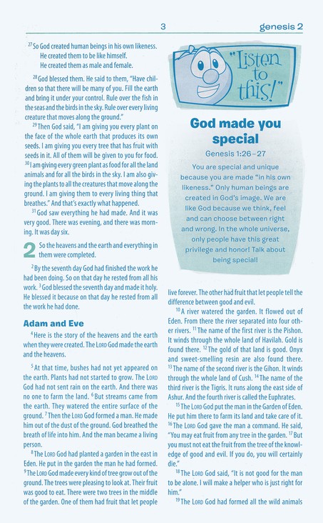 VeggieTales is a well-known Bible cartoon that is a familiar staple in most churches. Many of us grew up exposed to the shenanigans of those Peas, the silliness of the Cucumber, and the motherly love of the Blueberry. Now, those same characters are found within the pages of the VeggieTales NIrV Bible. We purchased this from ChristianBook.com but I have seen it available at various retailers.